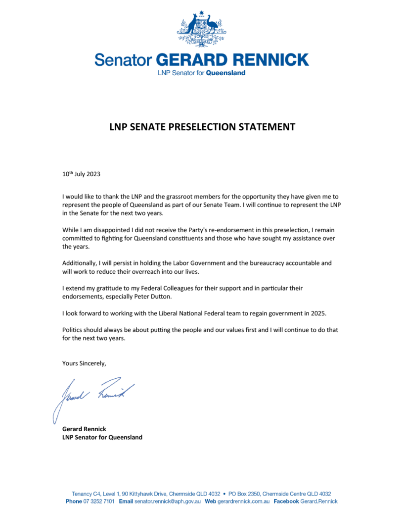 10th July 2023 I would like to thank the LNP and the grassroot members for the opportunity they have given me to represent the people of Queensland as part of our Senate Team. I will continue to represent the LNP in the Senate for the next two years. While I am disappointed I did not […]